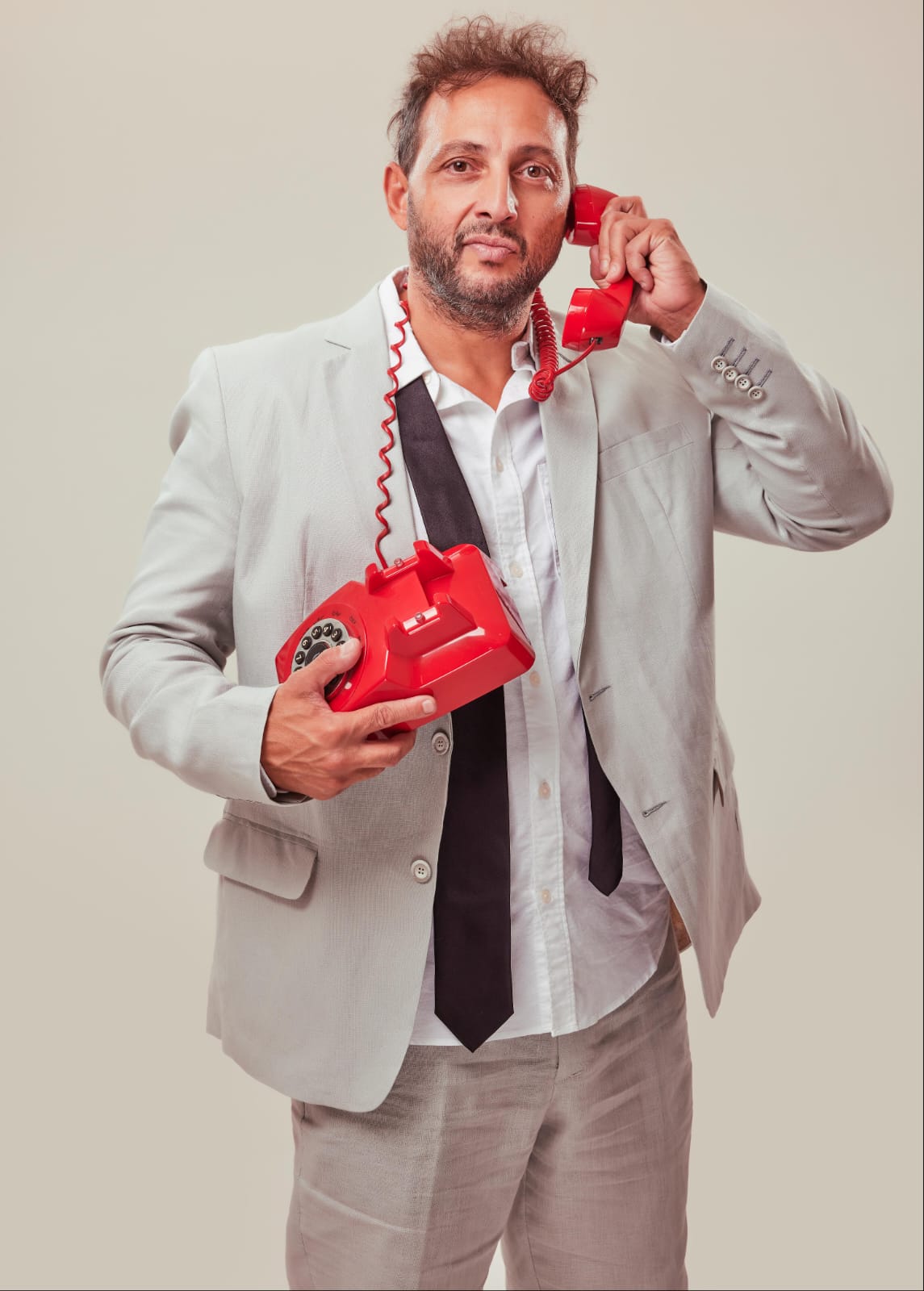 La escenografía de Luis Rojo apuesta por la simpleza y la funcionalidad: algunos teléfonos con cable, dos estructuras de madera, una escalera y un escritorio bastan para crear el universo laboral del protagonista. La iluminación de Stefany Briones Leyton acompaña con precisión cada momento de la obra, subrayando los cambios de clima y ritmo.