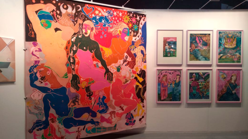La galería Pabellón 4 también dijo presente en esta edición de la feria con obras de Dino Bruzzone, Paula Otegui, Jimena Fuertes -que viene de exhibir su «Sueño líquido» en el museo Fortabat-, Perla Benbeniste y Paula Sende.