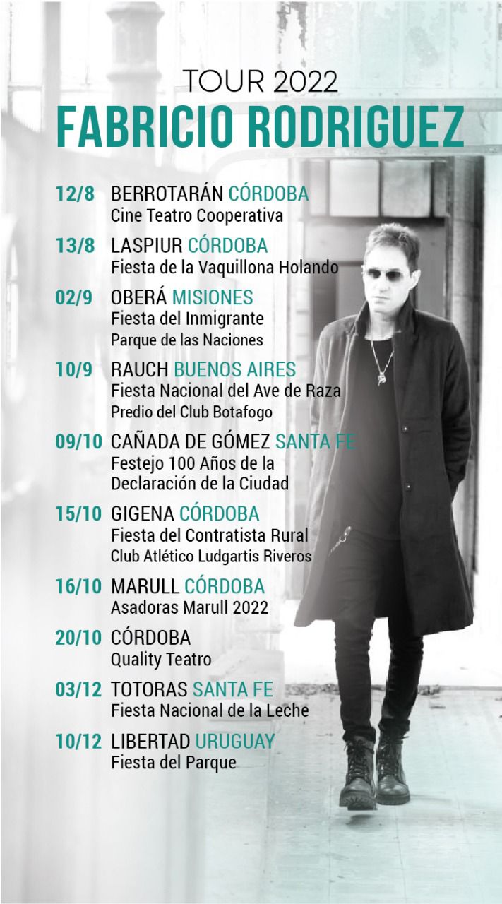 Luego de su gira por Estados Unidos en junio, Fabricio Rodriguez inició su periplo argento y a continuación te dejamos las fechas de su Tour hasta fin de año.