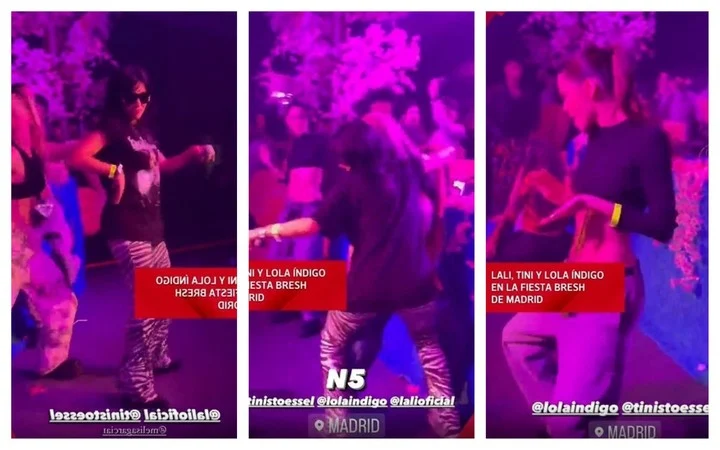 Así las cosas, en la noche del viernes se dio una situación que bien podría ser el adelanto de lo que Lali y Tini se traen entre manos. Sucede que ambas coincidieron el la fiesta Bresh de Madrid. Y, justo cuando sonaba el tema N5, Espósito subió al escenario con un micrófono en su mano y empezó a desplegar su arte. Pero no sola: también estuvo con ella la española Lola Índigo, en quien se inspiró para escribir esa canción, y Stoessel, que aceptó el convite de su colega para bailar muy sensual junto a ella frente al público. Las imágenes fueron difundidas por la cuenta @mundofamososok.