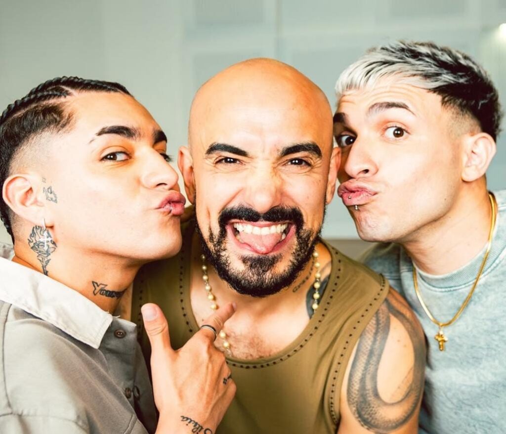 En la imagen que compartieron en redes, Rocco y Treze, integrantes de ROZE, posan junto a Abel Pintos en un clima distendido y cercano.