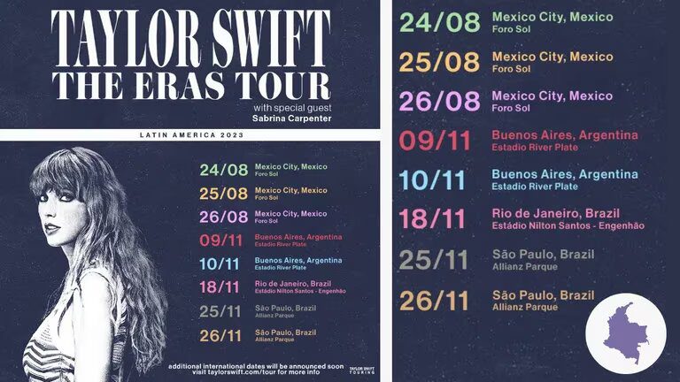 Es importante destacar que en esta oportunidad, todos los shows que la artista dará en América Latina contarán con la presencia de Sabrina Carpenter como telonera e invitada especial, quien entonará sus hits antes de la llegada de Taylor.